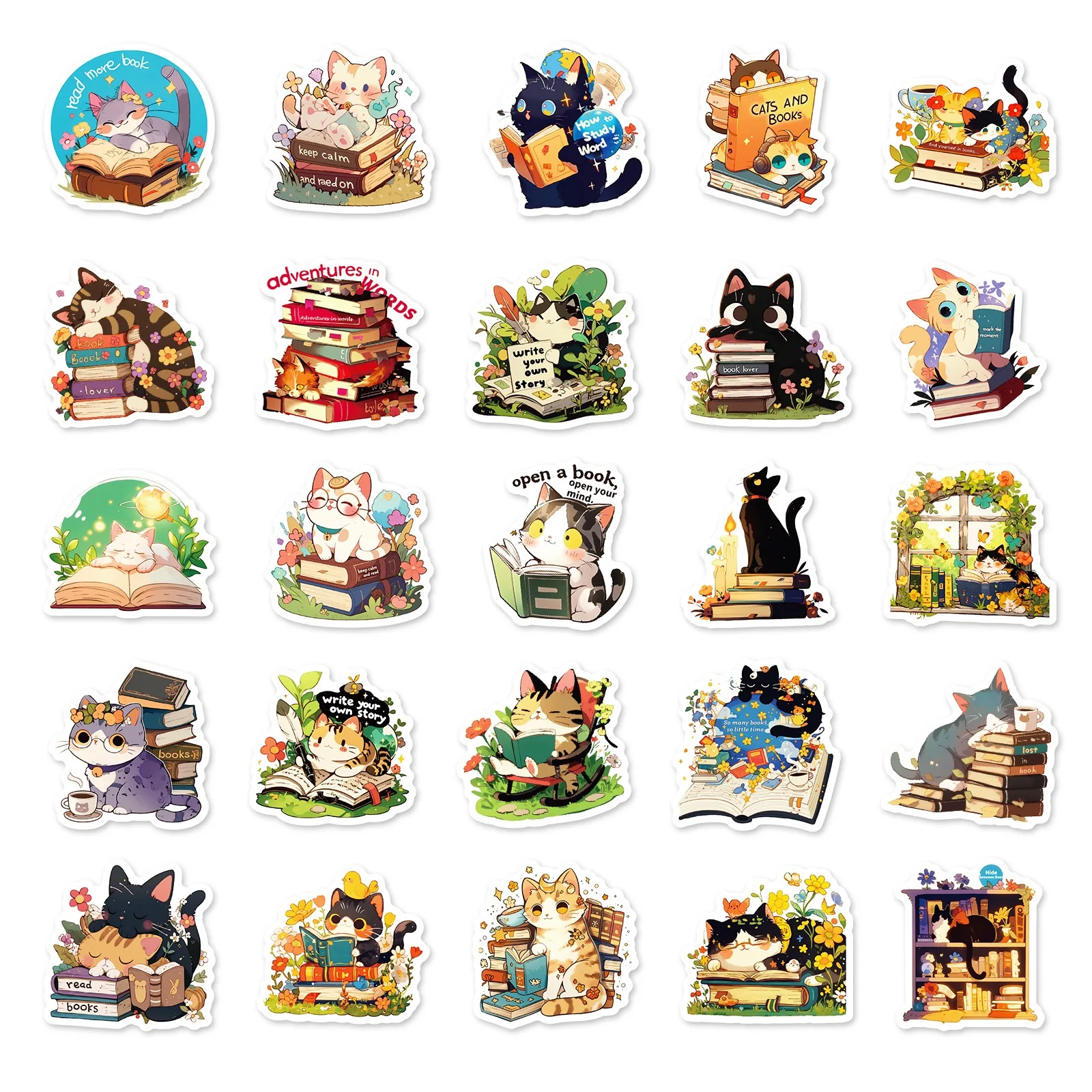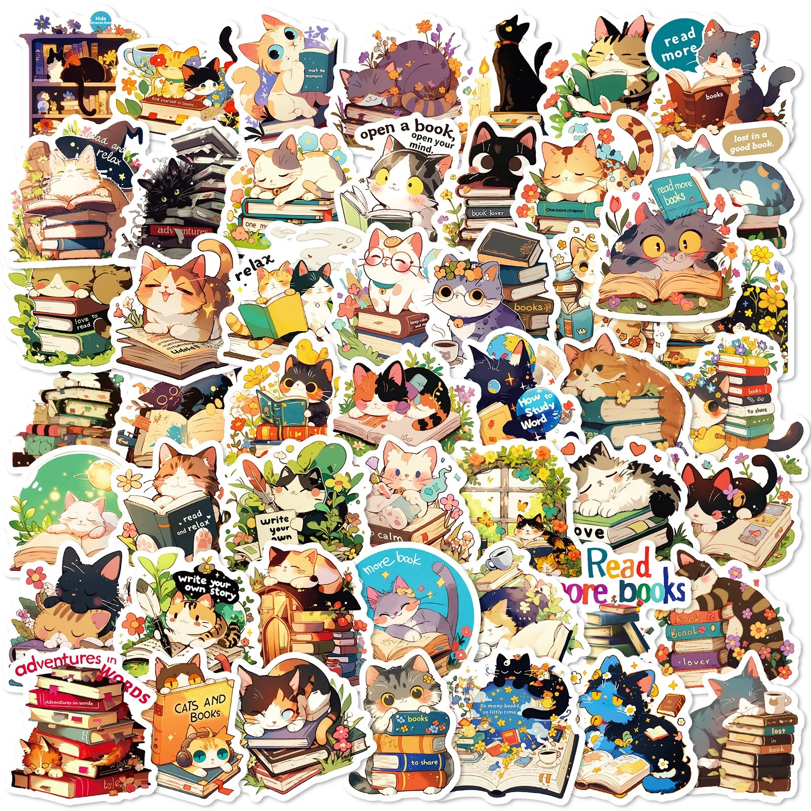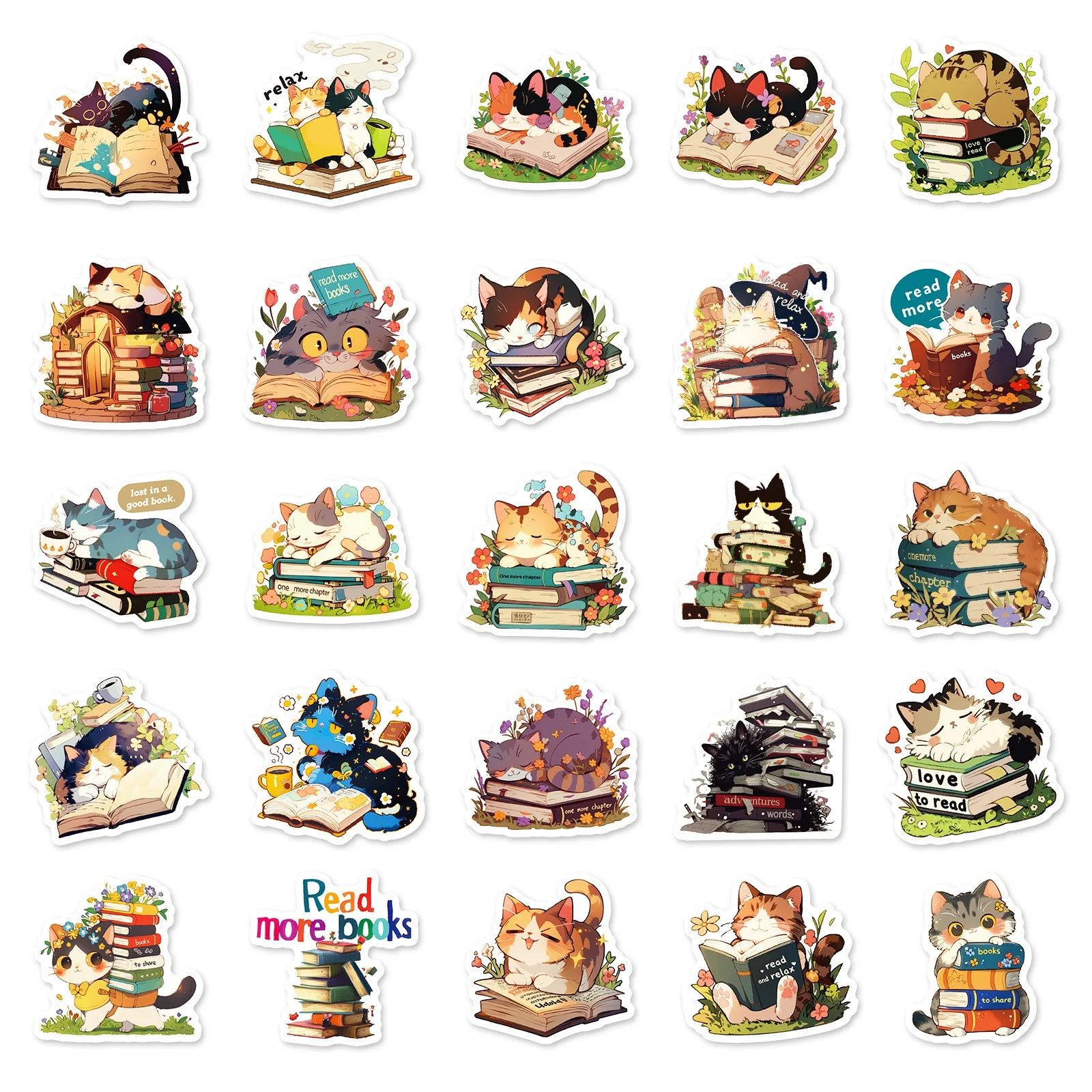 10/50pcs Cute Animal Cat Reading Book Kindle Creative Stickers Personality Decals Kid Toy Skateboard Guitar Refrigerator Sticker