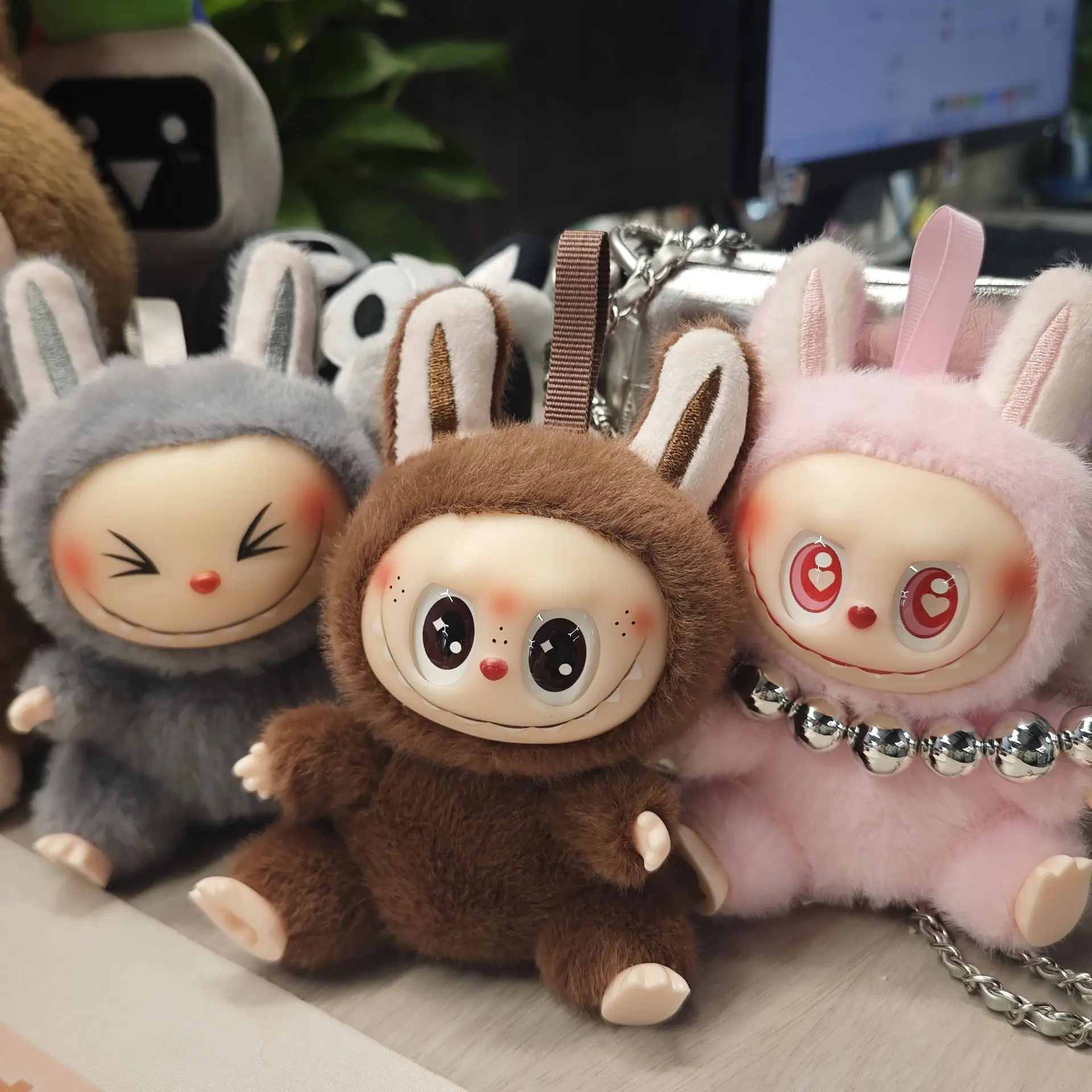 15cm The Monsters Labubu Vinyl Doll Plush Pendant Cute Desktop Ornament Decoration Plush Toy Backpack Pendant Girl Birthday Gift