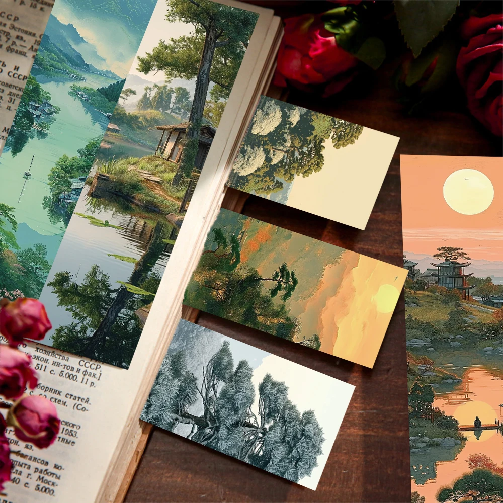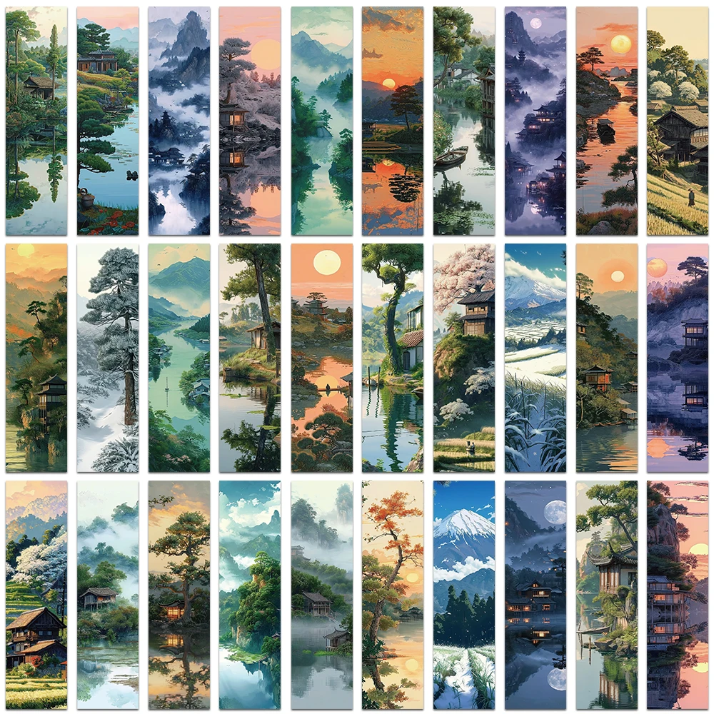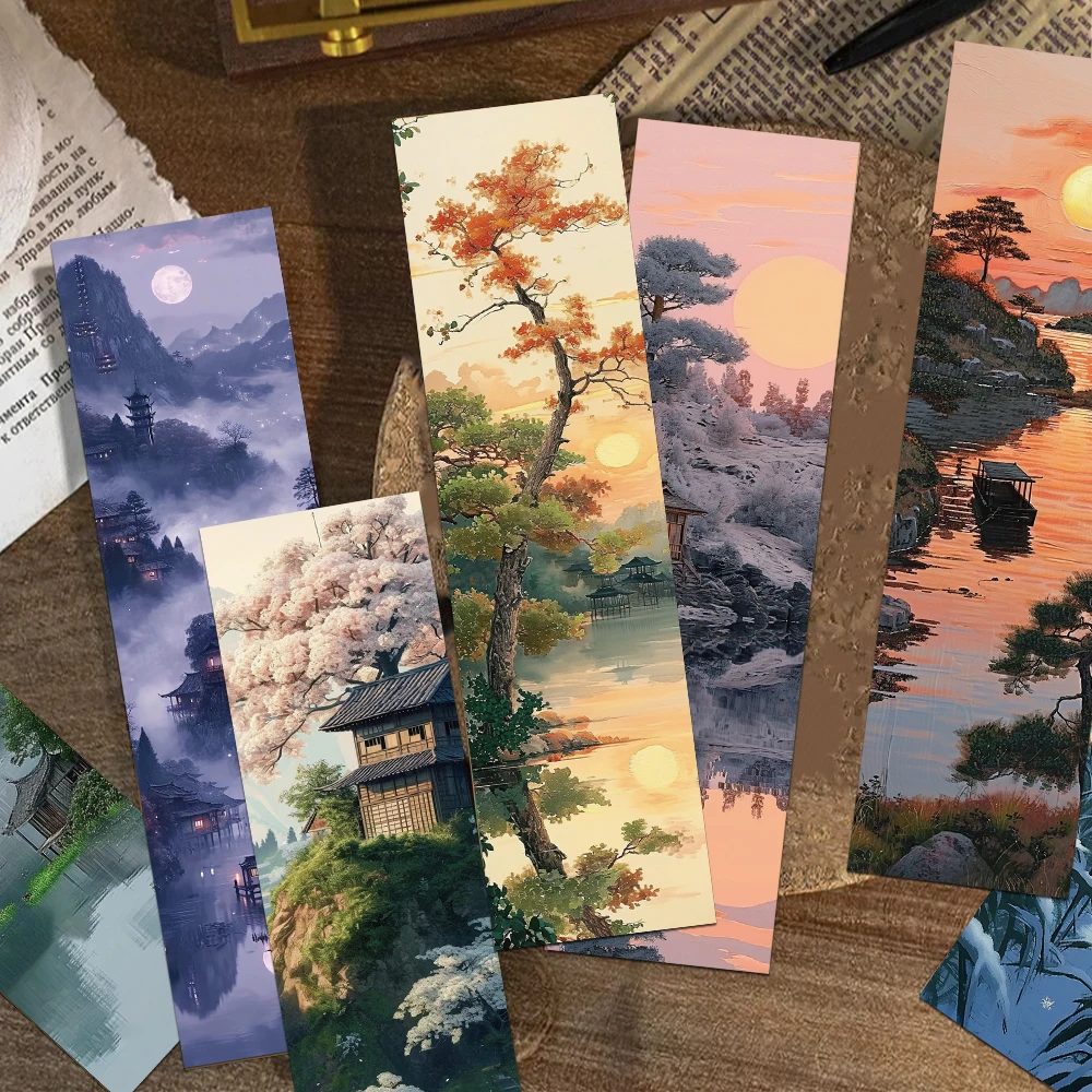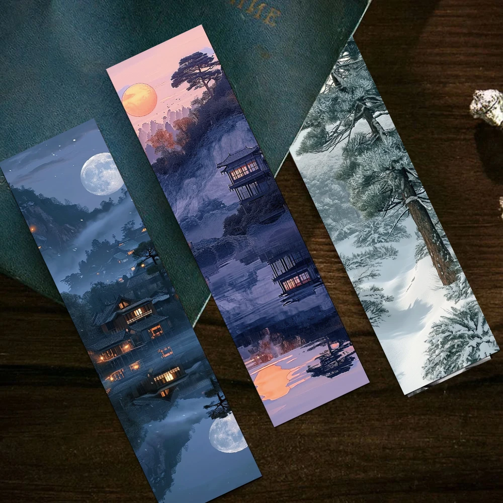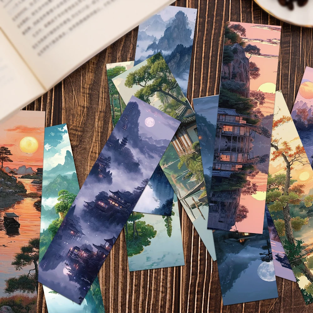 30pcs Chinese Style Landscape Bookmark Decoration Card Reading Pages Books Annotated School Stationary Supplies Creative Gifts