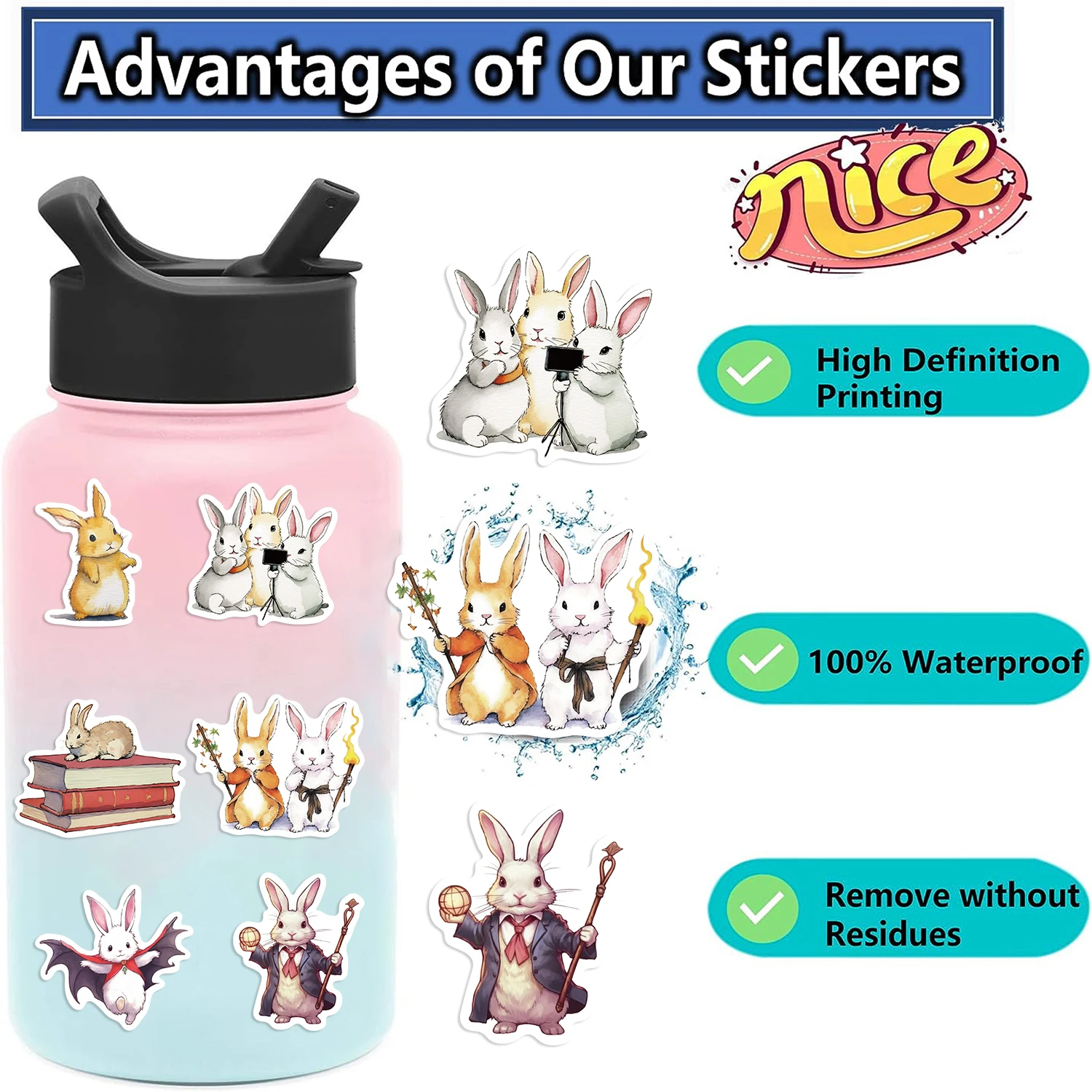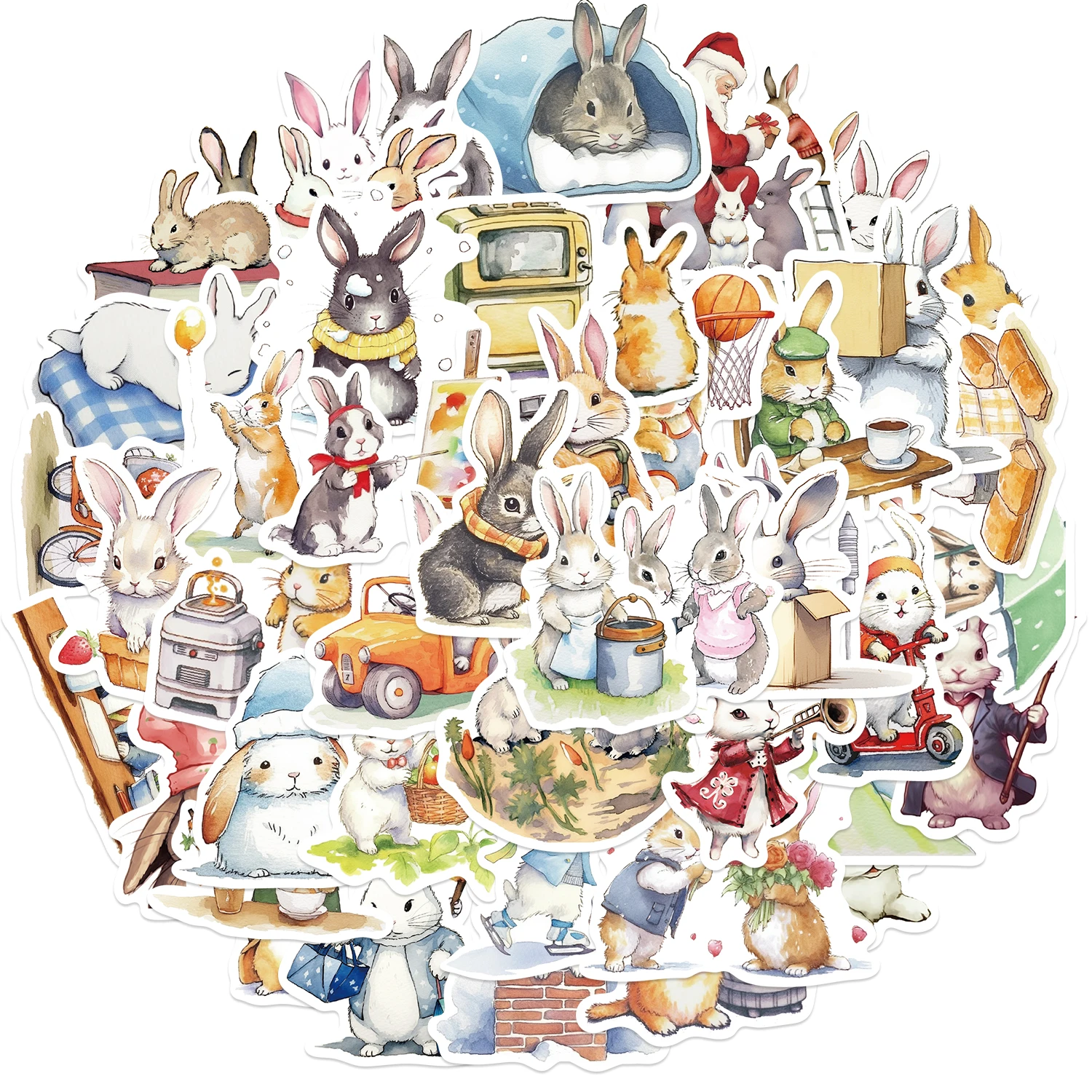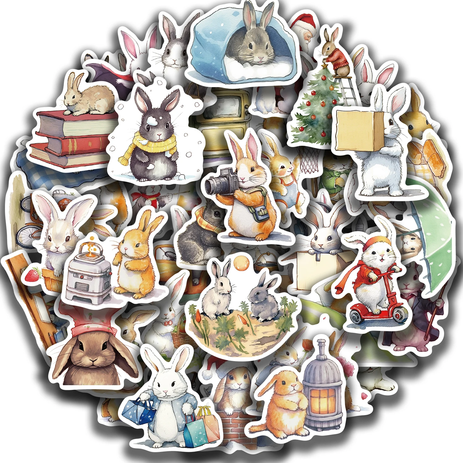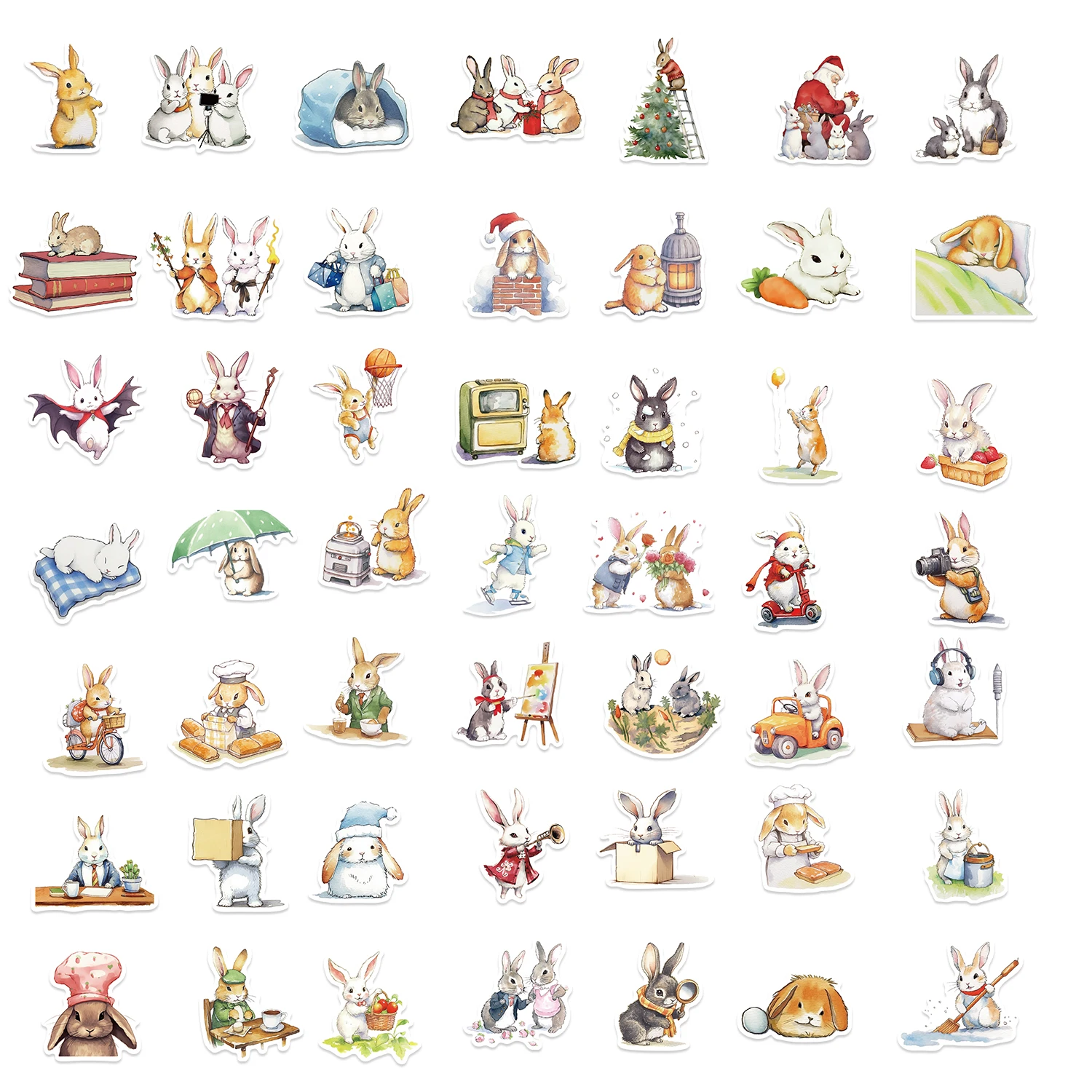 50PCS Bunny Rabbit Daily Day Cartoon Stickers Aesthetic Decals for Bike Bottle Suitcase Scrapbooking Children Gifts Sticker