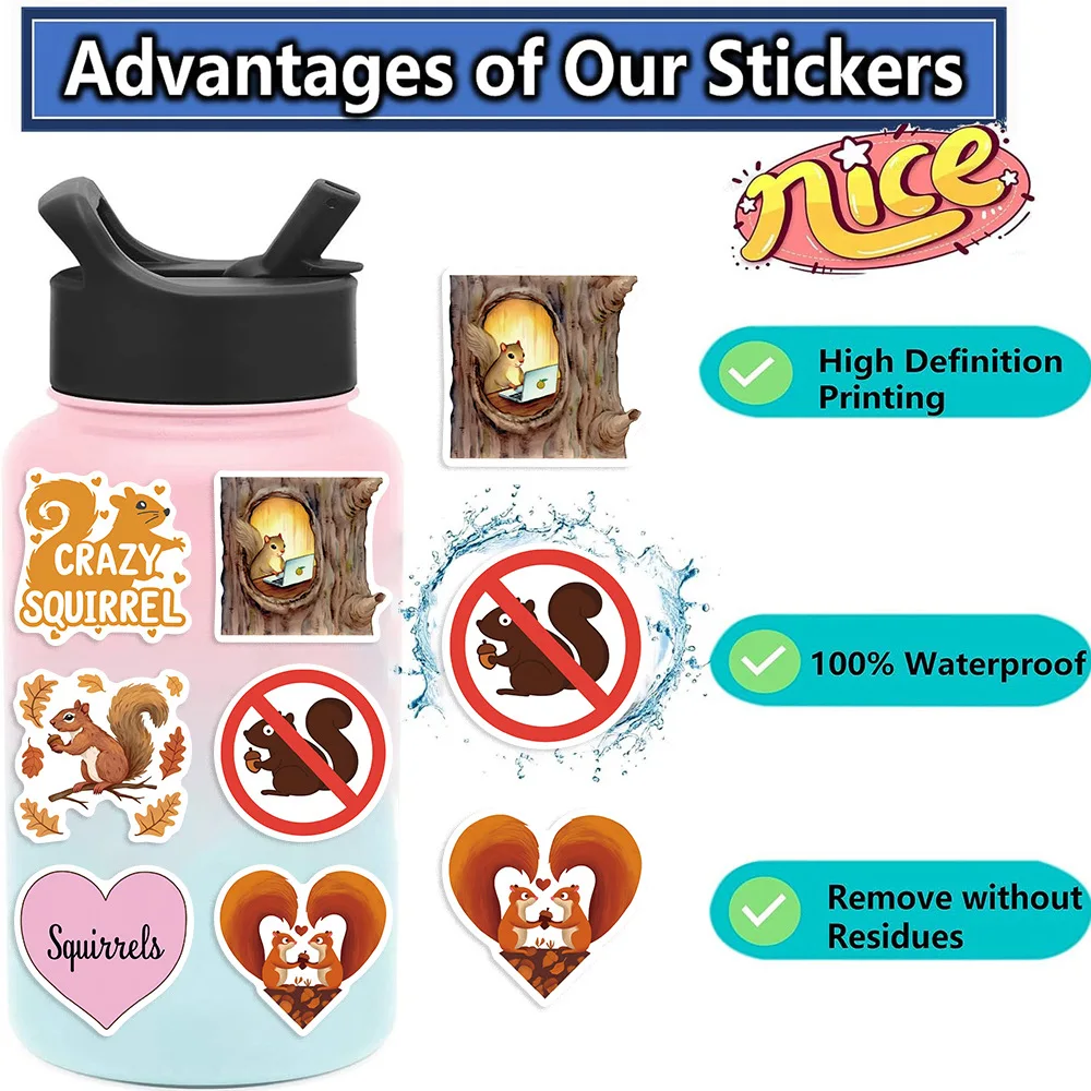 50pcs Squirrel Series Cartoon Cute Waterproof Sticker Skateboarding Snowboard Decorative Mobile Phone Retro Vinyl Sticker