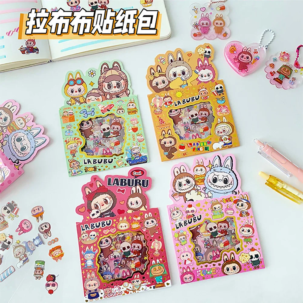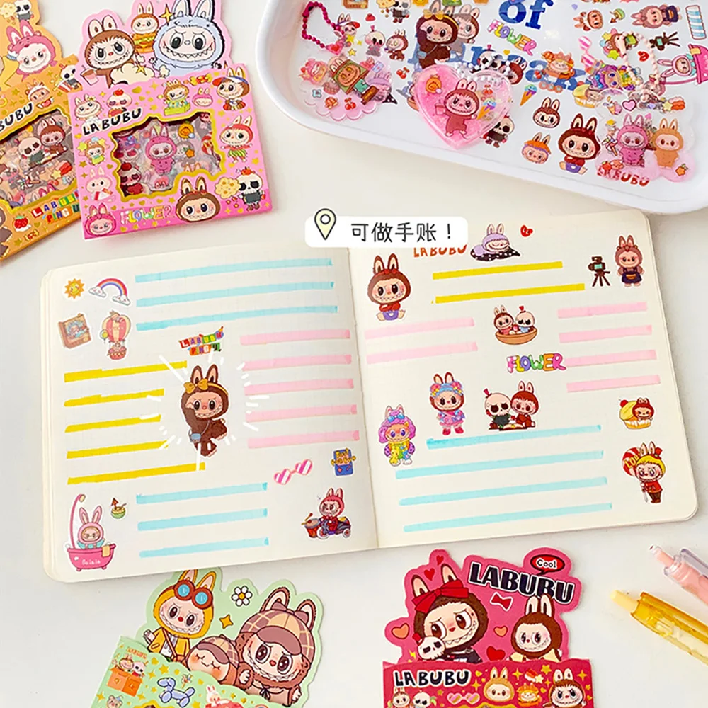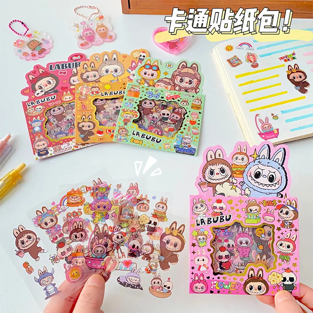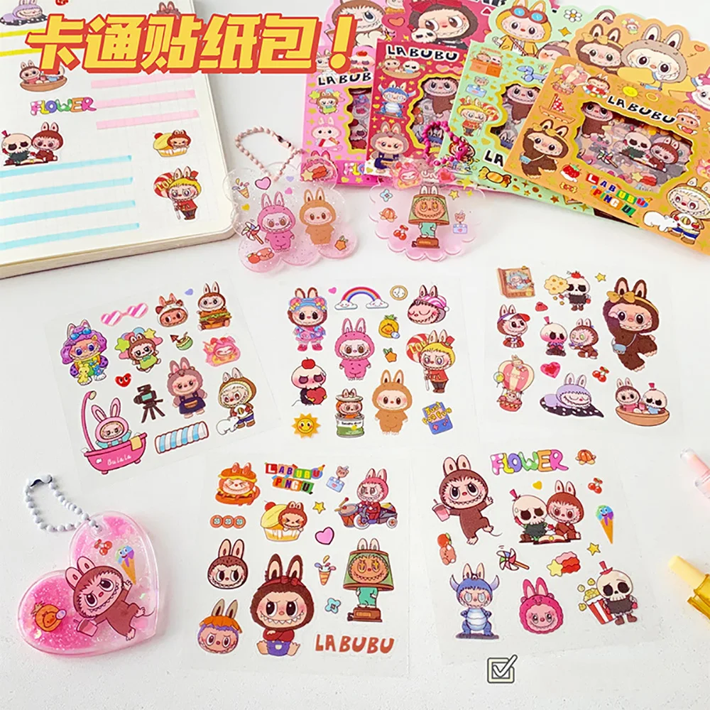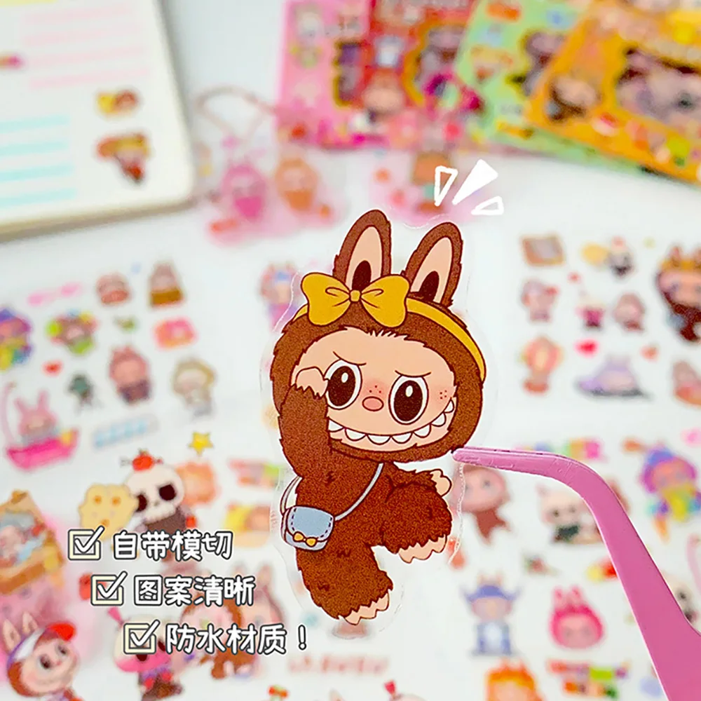 5PCS Labubu Anime Sticker Cartoon Applique Pack Transparent Waterproof Decals Diy Handbook Decoration Fashion Accessories Gifts