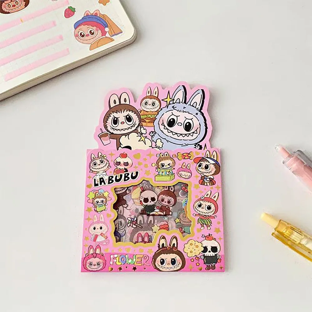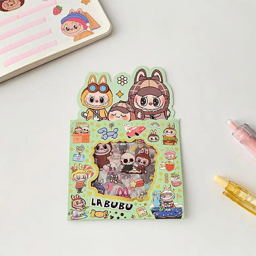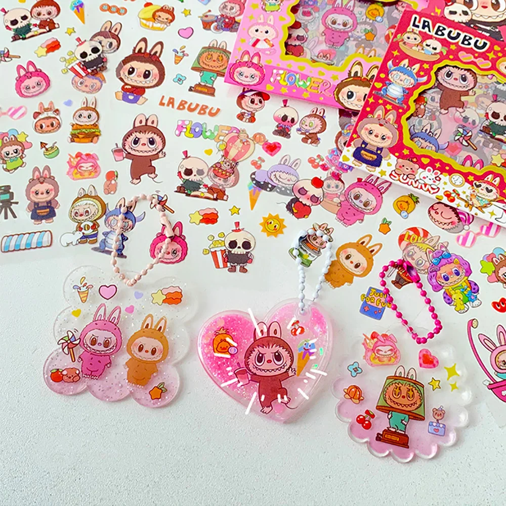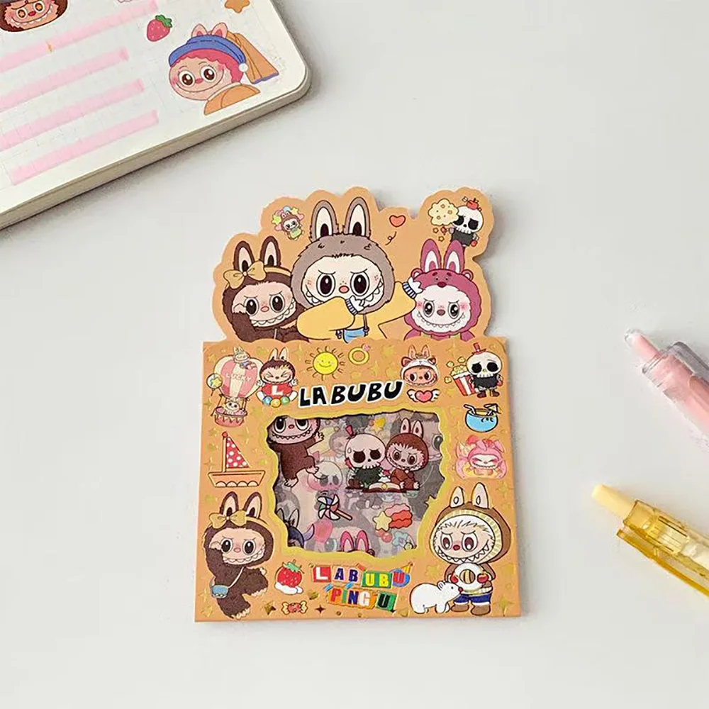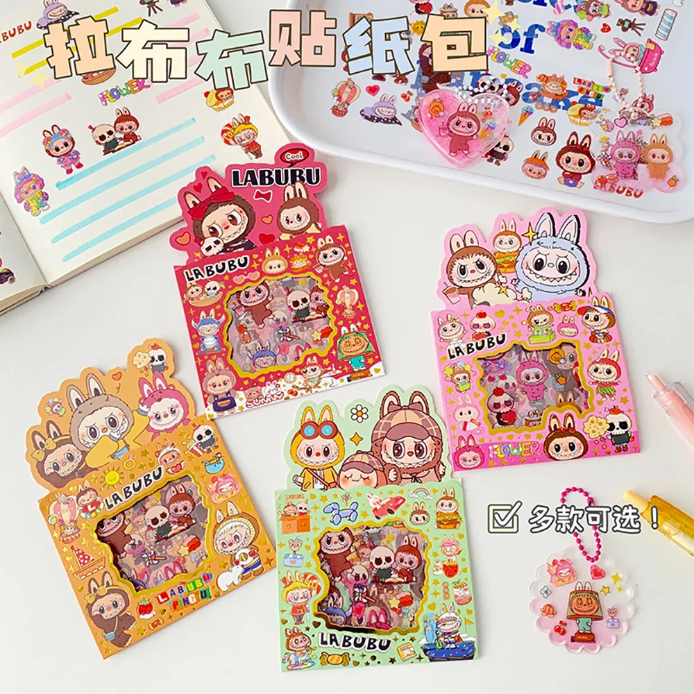 5PCS Labubu Anime Sticker Cartoon Applique Pack Transparent Waterproof Decals Diy Handbook Decoration Fashion Accessories Gifts