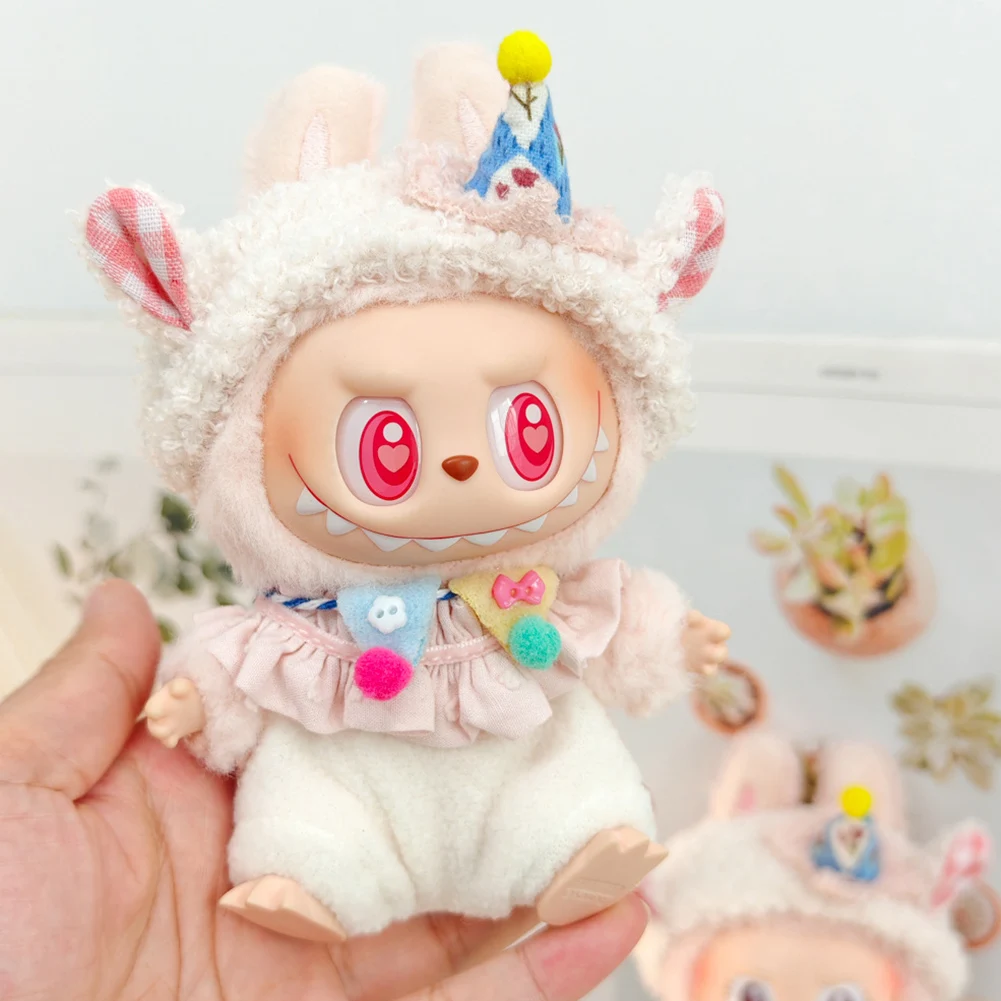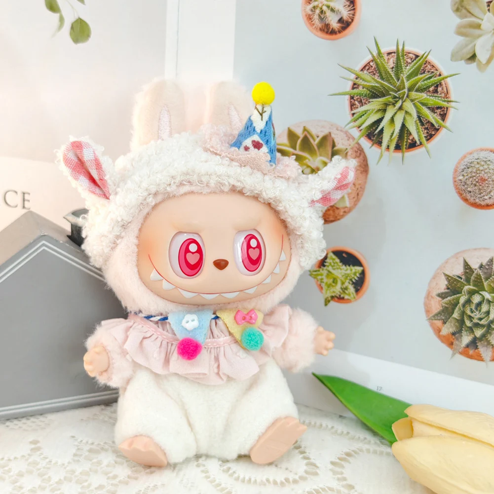 For Labubu V1 V2 Idol Cute Doll Clothes Fashion Sweater Outfit Accessories Sitting Party Pink White Striped Sweater Cup Clothing