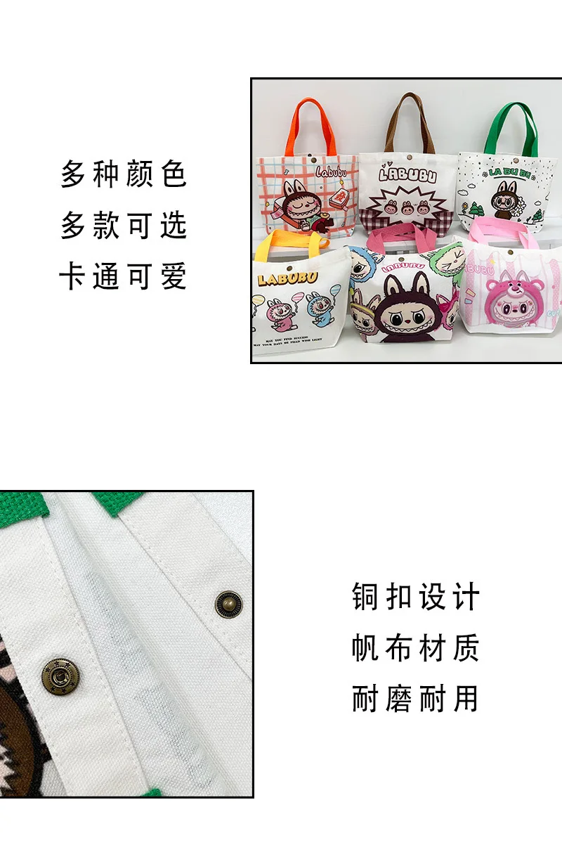 Kawaii Labubu Monster Canvas Tote Bag Simple Cartoon Shopping Bags Fashion Small Bags for Daily Folding Casual Handbag Pouch