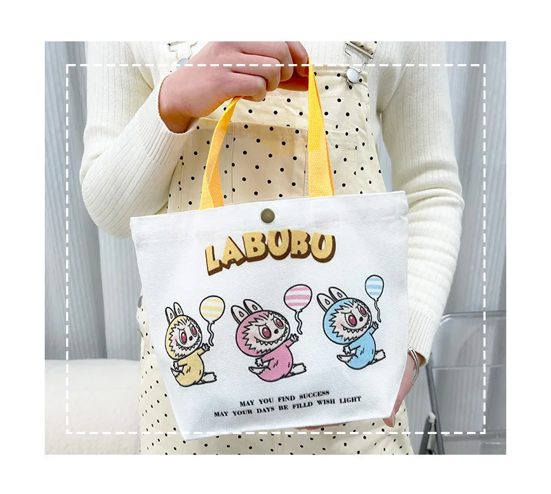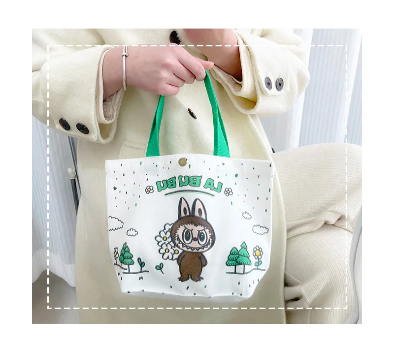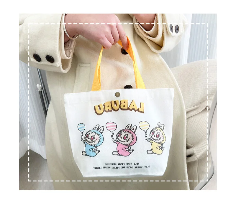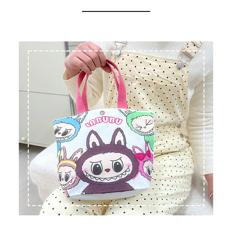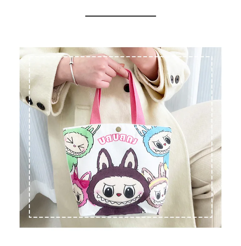 Kawaii Labubu Monster Canvas Tote Bag Simple Cartoon Shopping Bags Fashion Small Bags for Daily Folding Casual Handbag Pouch