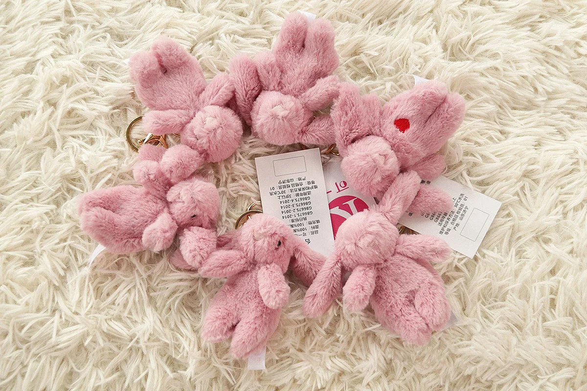 Stuffed Animals Cute Cartoon Rabbit Keychain Love Pompom Trinket Toy Girl Bag Car Keychain Mobile Phone Pendant Jewelry Gift